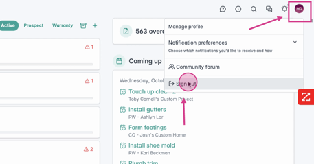 If you need to sign out, go to the top right corner of any page in Ressio. Click your profile icon and go to "Sign out" at the bottom of the drop down menu.